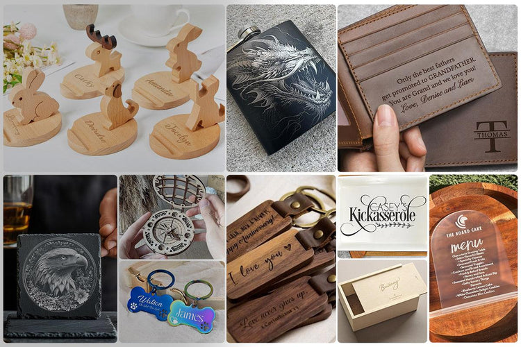 Can be engraved wood, paper, scratch paper,kraft paper, acrylic,slate,ceramic, glass, coated metal,rubber,silicone,leather,lacquered metal,plastic, bamboo and other materials.